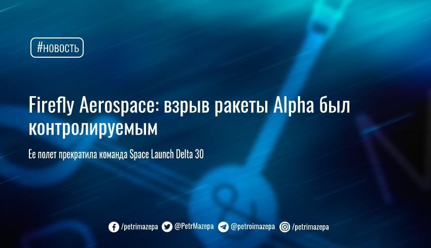 «Ракета Firefly Alpha не взорвалась самопроизвольно, ее полет был прерван из центра управления Space Launch Delta 30 из аномалии, согласно протоколам безопасности полетов», - значится в сообщении.