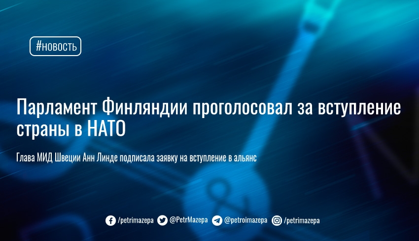 17 мая парламент Финляндии большинством голосов (188 из 200) поддержал вступление страны в НАТО.