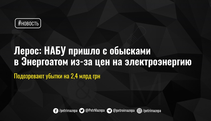 Лерос: НАБУ пришло с обысками в «Энергоатом» из-за цен на электроэнергию