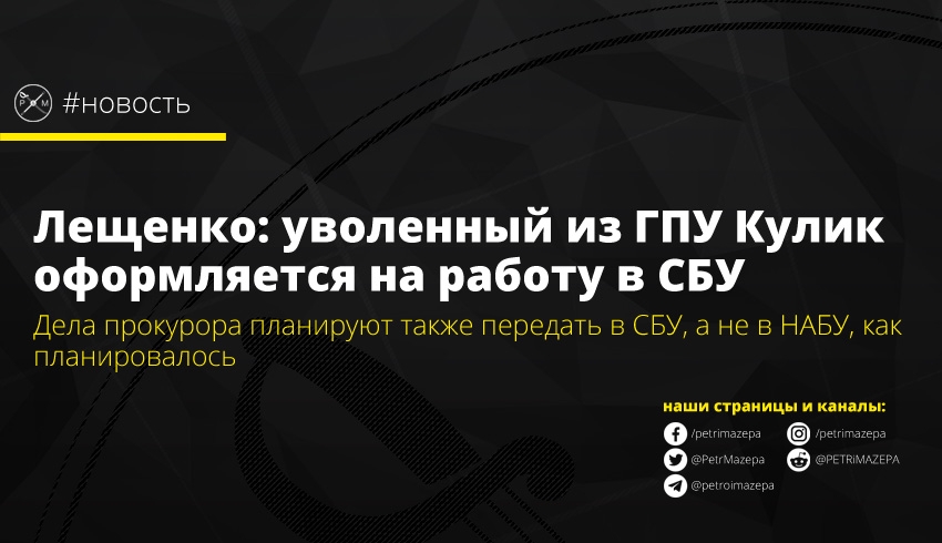 По информации бывшего народного депутата Сергея Лещенко, документы Кулика уже в отделе кадров спецслужбы. Бывший прокурор планирует стать замом в главном следственном управлении СБУ.