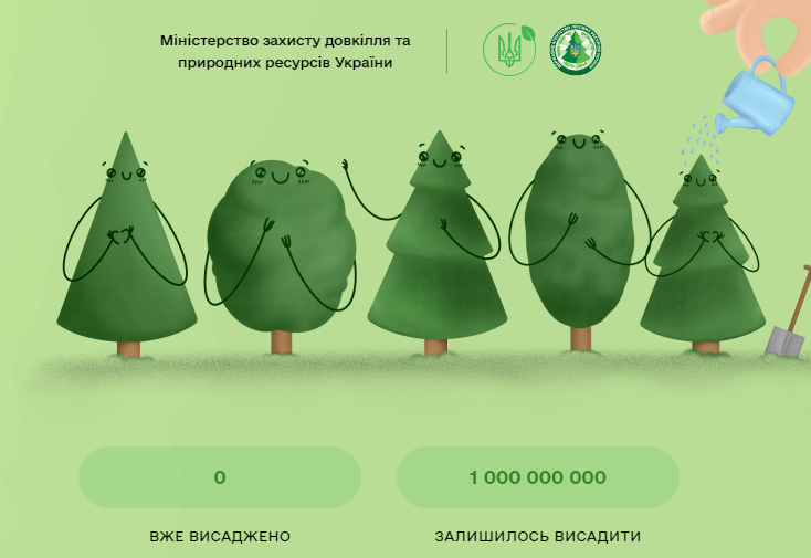 Кроме миллиарда деревьев за три года, говорят о еще более глобальной цели – засадить саженцами миллиард гектар за 10 лет. И чтобы привлечь как можно больше людей к выполнению этих задач, создали специальный сайт «Зелена країна». На этом сайте можно пожертвовать средства на лес, или же самому посадить дерево и рассказать об этом на весь мир.
