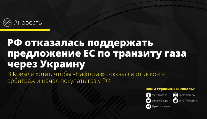 РФ отказалась поддержать предложение ЕС по транзиту газа через Украину