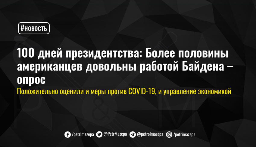 Всего положительно оценивает работу Байдена 55% респондентов, негативно ее оценивает 40% респондентов. Высоко оценили американцы предпринятые им меры по борьбе с COVID-19 – действия президента США одобрили 65% респондентов, а не одобрили только 29%. Уточняется, что еще в январе во время аналогичного опроса действия президента, Дональда Трампа, по борьбе с пандемией одобряли лишь 38% респондентов.