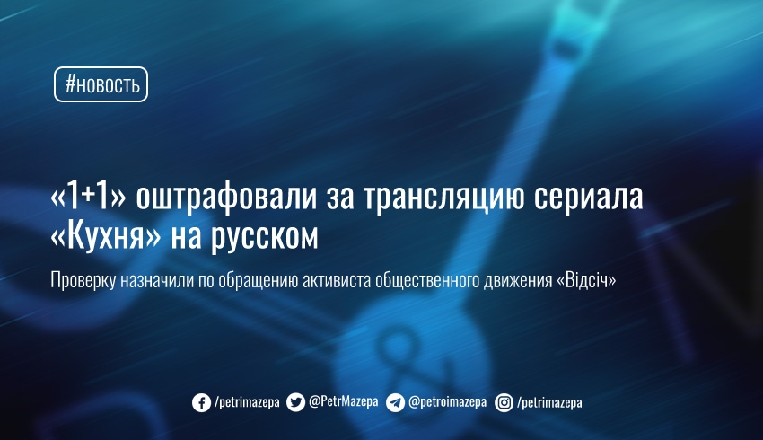 За скаргою нашого активіста Максима Ковбика Нацрада оштрафувала канал 1+1 за незаконний показ російського серіалу «Кухня» російською! А завтра набирає чинності норма закону про мову, що зобов’язує телеканали транслювати українською і фільми власного виробництва, зокрема Сватів ? pic.twitter.com/MVO4joHELn