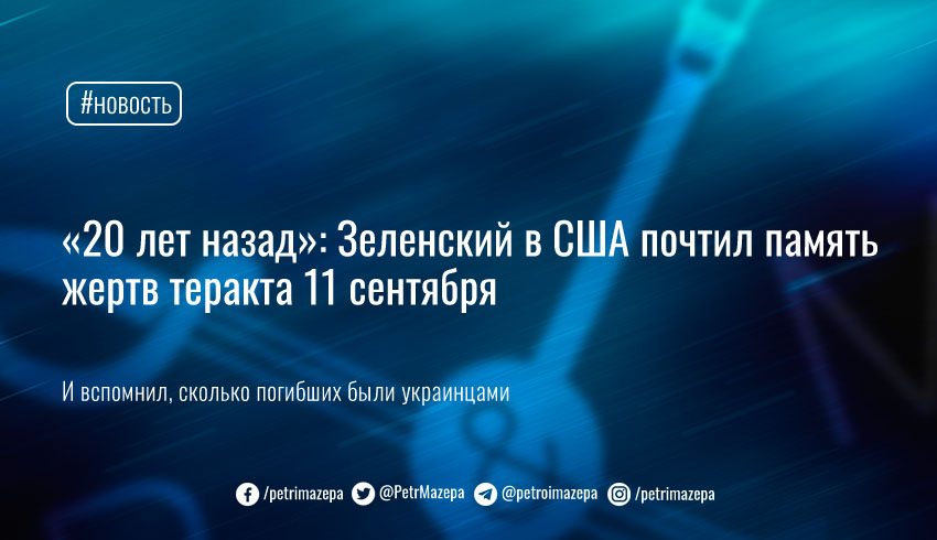 Президент Владимир Зеленский, который вчера приехал в США для участия в 76-й сессии Генеральной ассамблеи ООН, почтил память жертв теракта 11 сентября 2001 года.