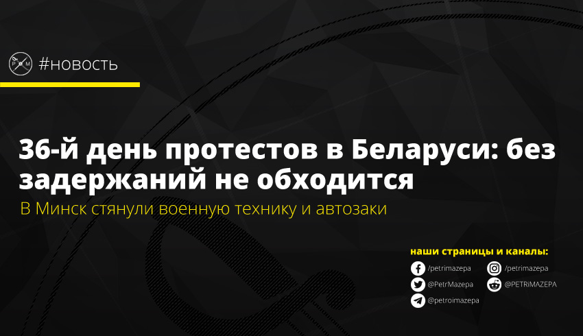 В Беларуси 13 сентября проходит «Марш героев». Таким образом в стране 36-й день подряд продолжаются акции протеста из-за фальсификации президентских выборов. Власти начали стягивать в город автозаки и военную технику. Сообщается о первых задержаниях.
