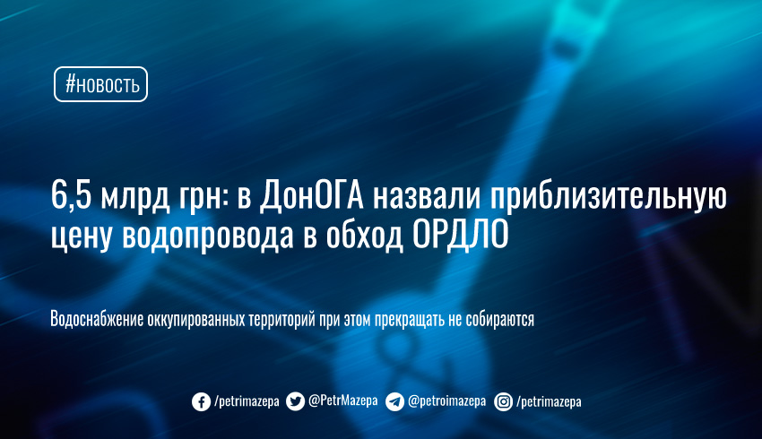 Глава Донецкой ОГА Павел Кириленко сообщил, что точная стоимость нового водопровода, который собираются построить в обход оккупированных территорий, будет известна в декабре этого года. Но, приблизительно, речь идет про 6,5 млрд грн.