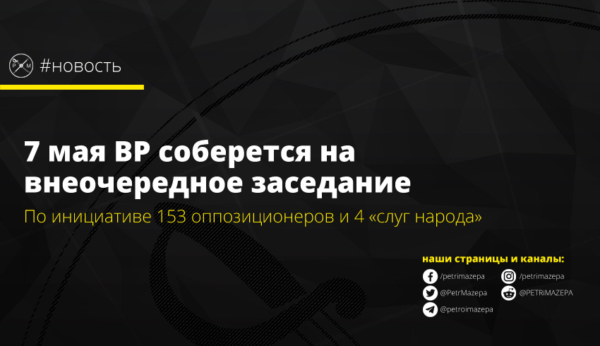 Народный депутат от «Европейской солидарности» Алексей Гончаренко в своем Telegram сообщил, что 7 мая, состоится внеочередное заседание Рады. Инициатором заседания является фракция «Европейская солидарность». По словам Гончаренко, впервые сессия состоится по требованию оппозиции (из 157 подписей только четыре – «слуги народа»).