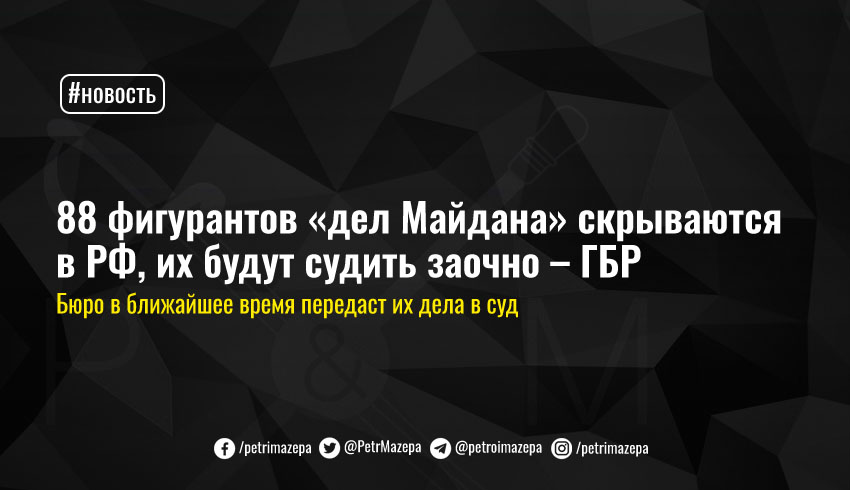 Государственное бюро расследований скоро передаст в суд дела касательно исполнителей и организаторов преступлений времен Революции Достоинства, которые скрываются в РФ. Всего в стране-агрессоре пытаются избежать суда 88 фигурантов «дел Майдана».