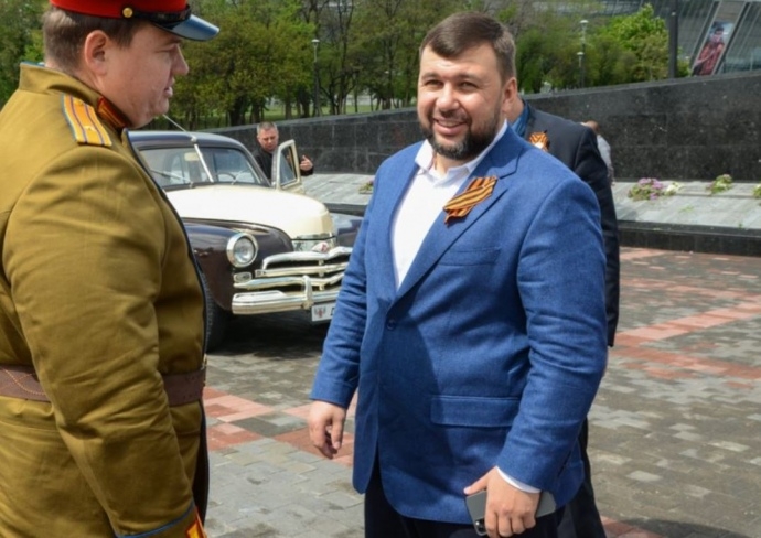 Автопробег возглавил еще сильнее увеличившийся в объемах главарь «республики» Пушилин, на советском авто «Победа», но с «буржуйским» iPhone.