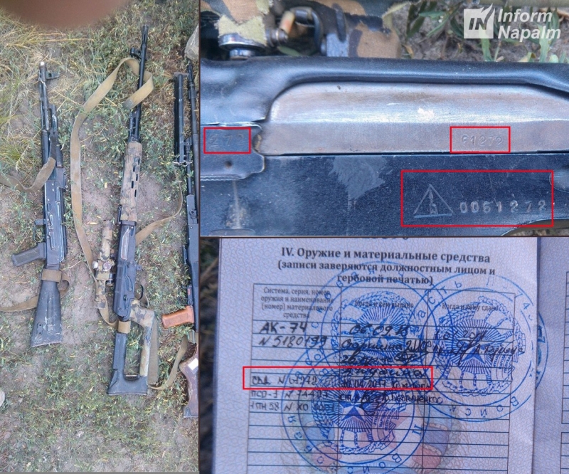 Волонтеры InformNapalm проанализировали фотографии оружия российской разведгруппы и установили, что снайперская винтовка Александра Щербы была изготовлена в РФ после 2000 года. Такие выводы были сделаны на основании сверки серийного номера винтовки 0061272 с данными, размещёнными на российском специализированном форуме guns.ru.