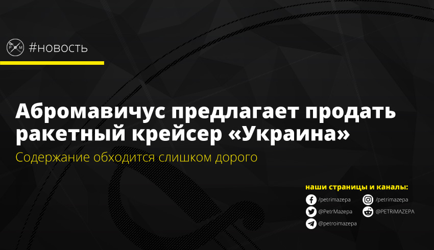 Гендиректор «Укроборонпром» Айварас Абромавичус считает, что нужно рассмотреть возможность продажи ракетного крейсера «Украина», который удерживается на госпредприятии «Николаевский судостроительный завод». Его содержание обходится дорого, а использовать его в современных условиях уже невозможно.