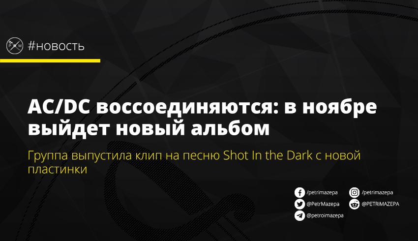 Легенды рока AC/DC объявили о воссоединении и выпустили видео на песню Shot In the Dark, которая войдет в будущий альбом коллектива - PWR/UP.