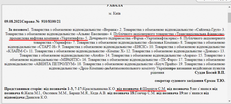 Так, в августе 2021 года, Шершун вел дело компании «Укртатнафта» Игоря Коломойского в споре против АМКУ.