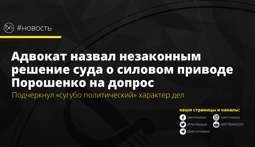 Адвокат экс-президента Петра Порошенко Игорь Головань считает решение суда о силовом приводе Порошенко на допрос «очередным нарушением закона».