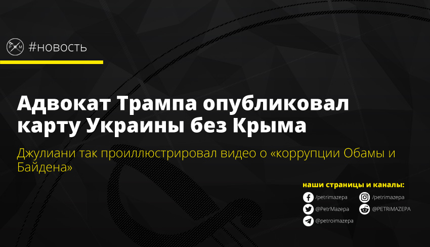 Адвокат президента США Дональда Трампа Рудольф Джулиани, опубликовал карту Украины без временно оккупированного страной-агрессором Крыма. Такой картой юрист проиллюстрировал видео на своем канале в YouTube.