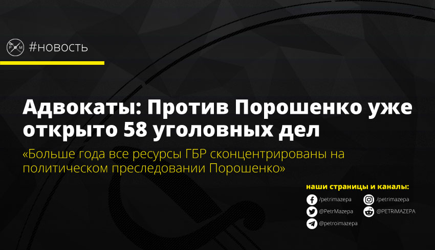 Адвокаты пятого президента Украины Петра Порошенко сообщили, что против их клиента открыто в общей сложности 58 уголовных дел. Причем некоторые из этих дел были ранее закрыты из-за отсутствия события преступления, но потом Печерский райсуд Киева открыл их снова.