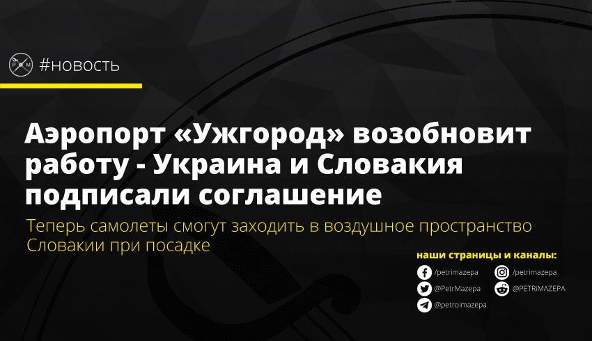Украина и Словакия подписали соглашение, которое позволит восстановить полноценную работу аэропорта «Ужгород». Об этом сообщил министр инфраструктуры Владислав Криклий.