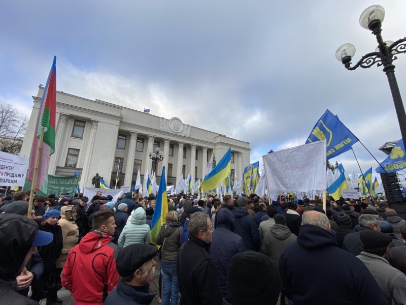Возле здания Верховной Рады проходит акция протеста против включения в повестку дня законопроекта №2178-10 «О внесении изменений в некоторые законодательные акты Украины относительно оборота земель сельскохозяйственного назначения».
