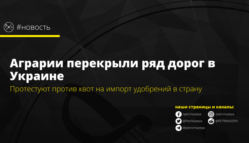 Представители украинских аграрных бизнес-ассоциаций начали акции протеста в ряде областей Украины. Таким образом они высказывают свой протест против введения квот на импорт удобрений в Украину из стран ЕС.