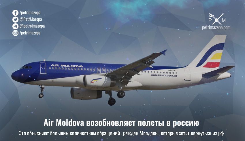 Авиакомпания Air Moldova сегодня заявила о возобновлении полетов в россию, которые были отменены после закрытия воздушного пространства в феврале, после начала войны россии против Украины.