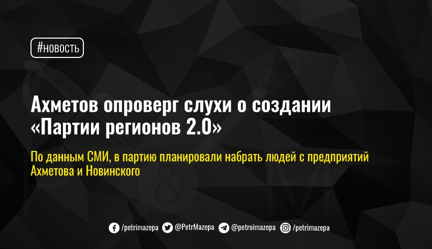 В конце апреля «Украинская правда» выпустила материал о том, что Ринат Ахметов или его окружение готовится к созданию новой политической силы, которая должна откусить значительный кусок электората ОПЗЖ Лёвочкина-Медведчука. Но в комментарии «Радио Свобода» Ахметов опроверг эту информацию.