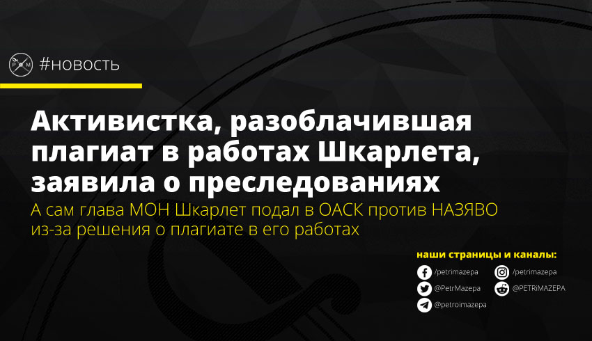 Активистка, разоблачившая плагиат в работах Шкарлета, заявила о преследованиях