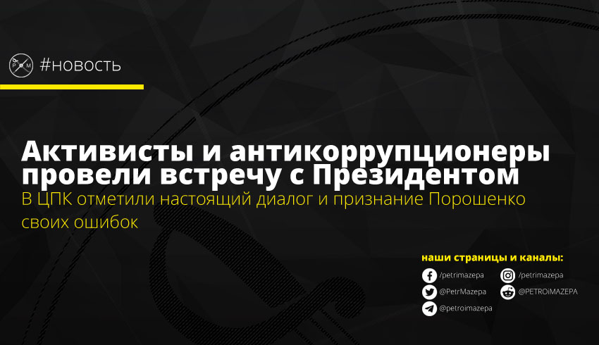 Активисты ЦПК и инициативы «Хто замовив Катю Гандзюк» побывали на закрытой встрече с президентом Украины Петром Порошенко. По итогам двухчасового диалога в ЦПК отметили, что ценят и уважают признание президентом своих ошибок, а активисты «Хто замовив Катю Гандзюк» узнали, что в этом деле они и президент на одной стороне.