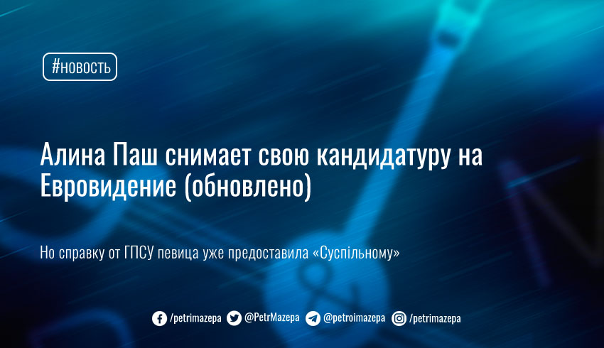 Чуть позже в Instagram Алина Паш заявила, что снимает свою кандидатуру как представителя Украины в конкурсе Евровидение.