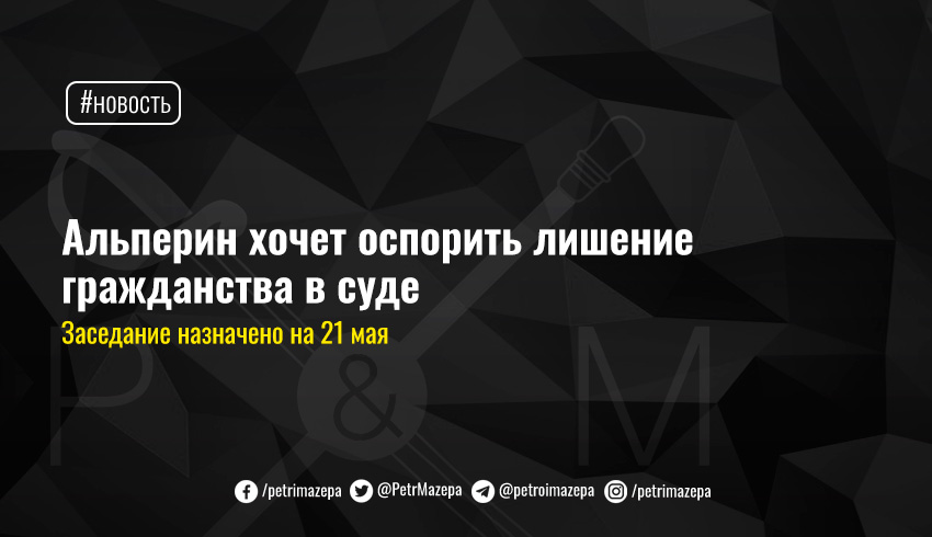 Одесский окружной административный суд назначил на 21 мая рассмотрение иска «короля контрабанды» Вадима Альперина, лишенного украинского гражданства, к Государственной миграционной службе.