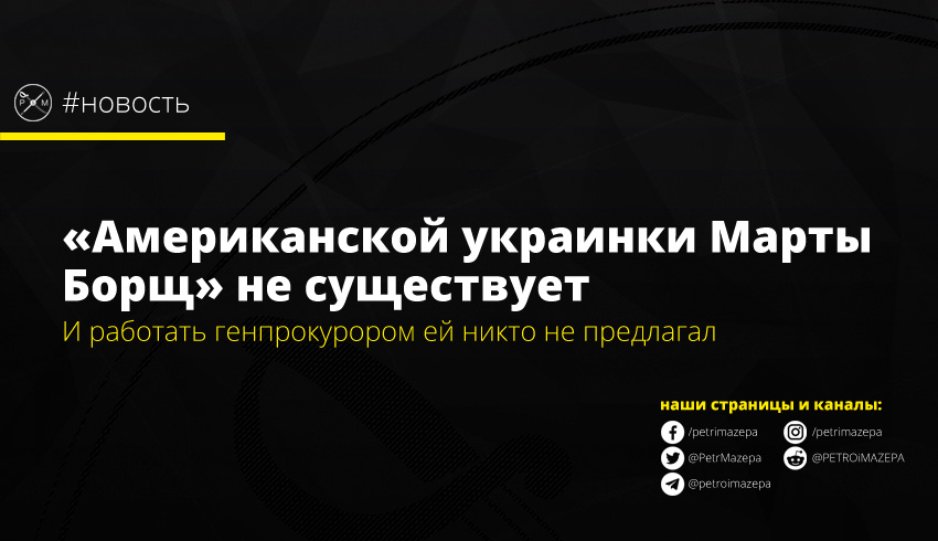 Многие украинские СМИ писали в 2017-2018 годах про американского прокурора, которая работала над в США над делом премьер-министра Украины Павла Лазаренко, Марту Борщ. Звучная для нас фамилия и успешная карьера в США помогли создать из нее некий образ, который уже не имеет ничего общего с реальностью. Который сегодня снова попытались вернуть в информационное поле.