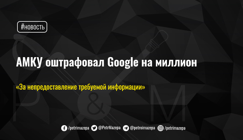 Антимонопольный комитет наложил штраф в размере 1 миллиона гривень на Google за непредставление в установленный срок информации по требованию государственного уполномоченного.