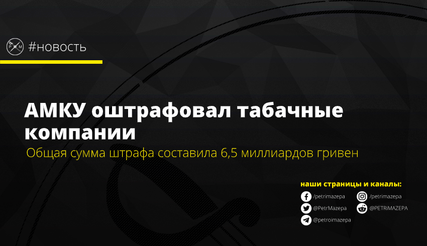 Сегодня, 10 октября, Антимонопольный комитет Украины (АМКУ) принял решение наложить штраф на ряд табачных компаний за антиконкурентные согласованные действия производителей и дистрибьюторов сигарет. Общая сумма штрафа составляет 6,5 миллиардов гривен.
