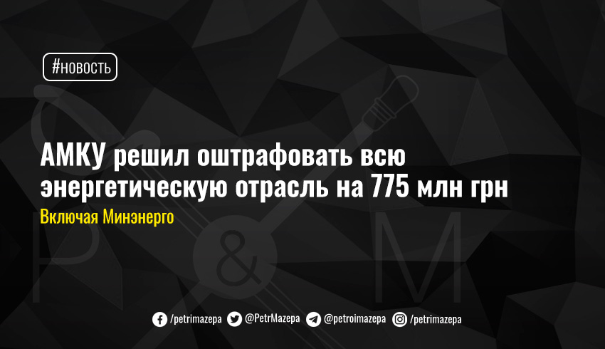 АМКУ решил оштрафовать всю энергетическую отрасль на 775 млн грн