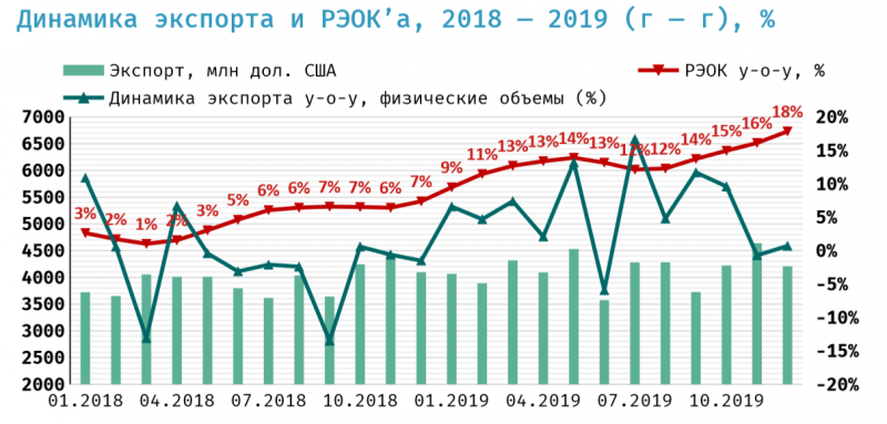 В таких условиях ярко читаемым является замещение стабильных источников притока валюты в страну (экспорта) краткосрочной комбинацией внешних неустойчивых факторов. Так, тренд восстановления экспорта (физических объёмов) продолжавшийся после Керченского кризиса (удара по логистике) «развернулся» в августе-сентябре на фоне укрепления гривни и снижения мировых цен на металлы.