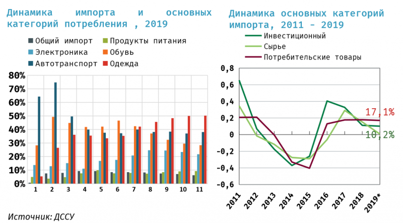 Одновременно при ухудшении деловых ожиданий бизнеса основной прирост импорта пришёлся не на инвестиционные категории (импорт производственных средств, сырья для дальнейшей переработки), а потребительские: бытовую электронику, автомобили, обувь и одежду, продукты питания.