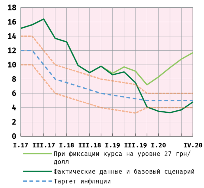 Целесообразность такого подхода обосновывалась необходимостью откалибровать инфляцию в Украине под средний уровень наших основных торговых партнёров. Так, кажущаяся на фоне периода 2000-2008 годов нормальной инфляция в 15-17%, при средневзвешенных 12-13% у наших ОТП, сейчас представляла бы индикатор нестабильности. К слову, среднемировая инфляция (дефлятор) в 2016-2018 гг. замедлилась до 3,1%, против 5,1% в 2000-2008, наших ОТП — до 4,3% против 12,6% в 2000-2008.