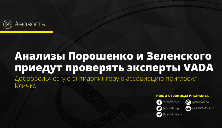 Эксперты Добровольческой антидопинговой ассоциации, (Voluntary Anti-Doping Association, VADA) приедут в Киев для проверки анализов кандидатов в президенты Владимира Зеленского и Петра Порошенко. Пригласил VADA экс-чемпион мира по боксу Владимир Кличко.