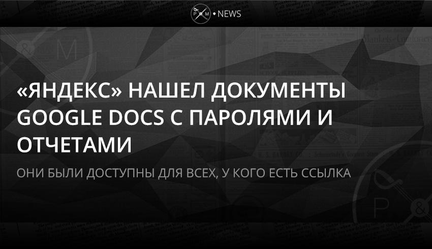 «Яндекс» нашел документы Google Docs с паролями и отчетами