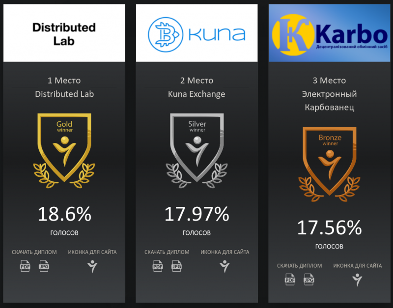 Несмотря на свой относительно небольшой возраст, Карбованец в 2018 году уже получил бронзу в номинации Лучший проект в сфере криптовалют по версии украинского PaySpace Magazine.