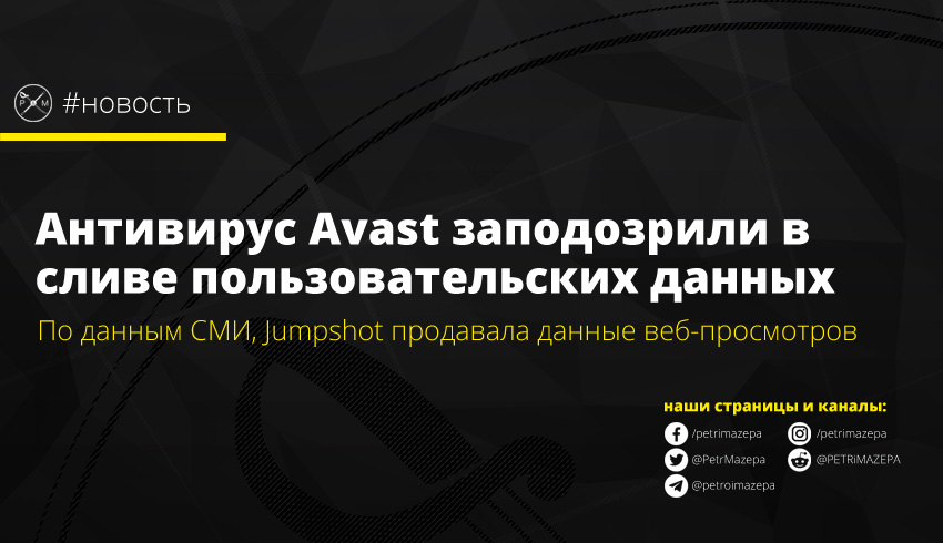 Журналист Vice обнаружил, что Avast собирала данные о веб-просмотрах пользователей с помощью своего антивируса и передавала дочерней компании Jumpshot. Та обрабатывала данные и продавала их.