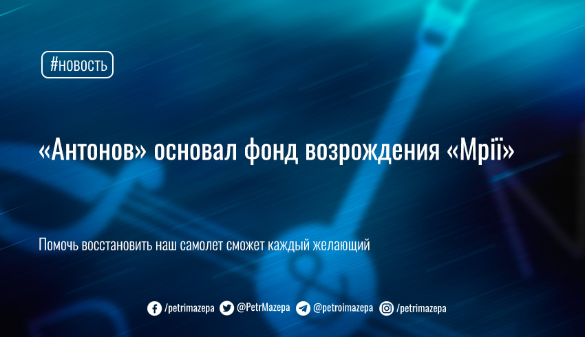 Государственное предприятие «Антонов» основало фонд возрождения транспортного самолета Ан-225 «Мрія», который россияне уничтожили в Гостомеле.