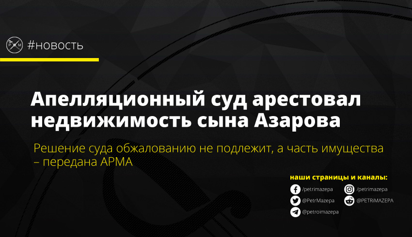 Киевский апелляционный суд арестовал итальянскую и украинскую недвижимость бывшего депутата Верховной Рады Алексея Азарова (сына экс-премьер-министра Николая Азарова). Также арест наложен на банковские счета, земельные участки и другую собственность. Часть имущества передано в управление Национальному агентству по вопросам выявления, розыска и управления активами, полученными от коррупционных и других преступлений (АРМА), пишут «Українськi Новини».