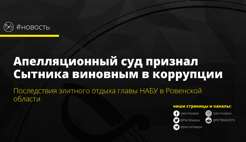 Ровенский апелляционный суд признал главу НАБУ Артема Сытника виновным в коррупции. Он несколько раз посещал элитные места отдыха в Ровенской области, но не вносил эти траты в свою декларацию.