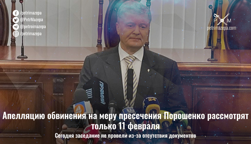 Апелляцию обвинения на меру пресечения Порошенко рассмотрят только 11 февраля