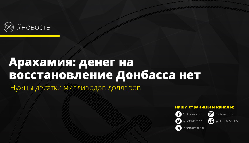 Глава фракции «Слуга народа» Давид Арахамия заявил, что на данный момент нет денег на восстановление временно оккупированного Донбасса. По его словам, вопрос о финансировании правильный, но преждевременный, поскольку изначально стоит добиться контроля над оккупированными территориями.
