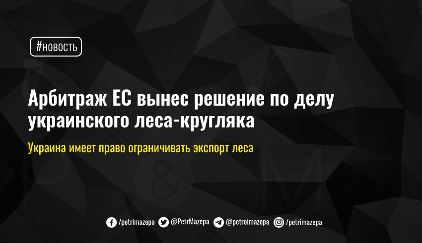 Арбитраж с ЕС по лесу-кругляку признал, что Украина имеет право ограничивать экспорт леса при определенных обстоятельствах. Однако при этом уточняется, что Украина должна откорректировать свой запрет от 2015 года.