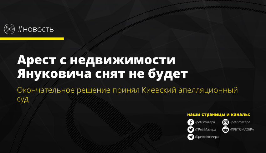 22 мая состоялось заседание Киевского апелляционного суда, который подтвердил арест земельного участка в Новых Петровцах (Киевская область), квартиры на Оболонской Набережной в Киеве, а также двух парковочных мест, которые принадлежали Виктору Януковичу, по делу о похищении личного помощника покойного ныне митрополита Киевского и всея Украины Владимира Александра (Драбинко), сообщают Українські Новини.
