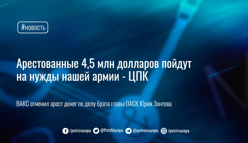 Арестованные 4,5 млн долларов пойдут на нужды нашей армии - ЦПК