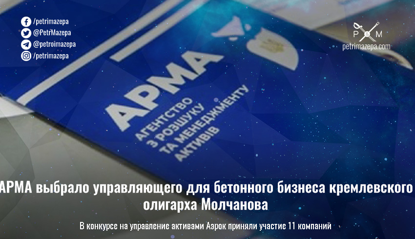 Национальное агентство Украины по вопросам выявления, розыска и управления коррупционными активами (АРМА) выбрало управляющего для арестованных активов ООО «Аэрок», которое принадлежит кремлевскому олигарху Андрею Молчанову. В конкурсе на управление активами «Аэрок╗ приняли участие 11 компаний. Договор с избранным управляющим будет подписан после оценки арестованных активов.